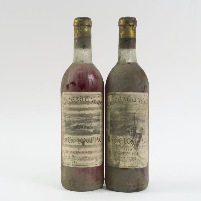 Lot de 2 BOUTEILLES CHÂTEAU LA NÈRE 'CRÈME DE TÊTE' LOUPIAC - 1959 - BG/BS au prix de 80 à 90 € en vente aux enchères par l'hôtel des ventes Primardeco