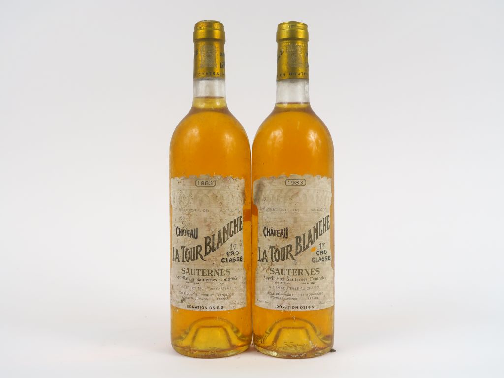 Lot de 2 BOUTEILLES CHÂTEAU LA TOUR BLANCHE 1er CC SAUTERNES- 1983 - BG au prix de 50 à 60 € en vente aux enchères par l'hôtel des ventes Primardeco