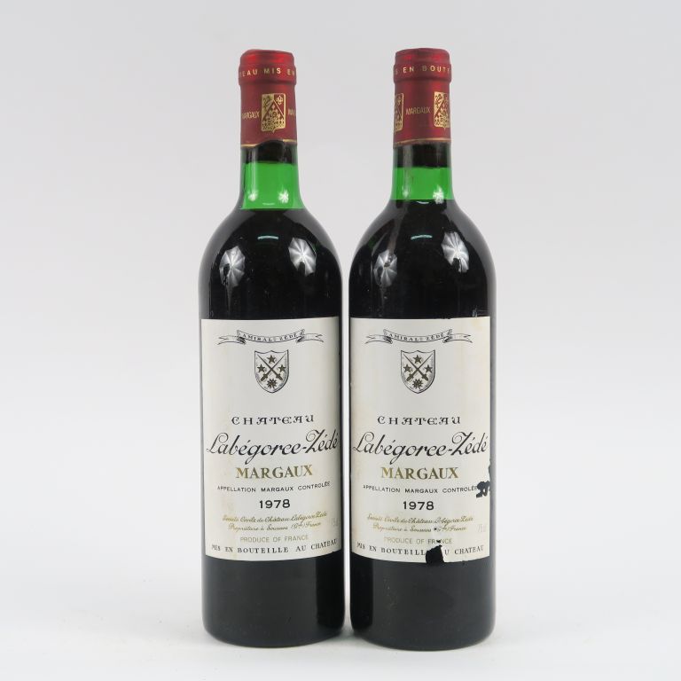 Lot de 2 BOUTEILLES CHÂTEAU LABEGORCE ZEDE MARGAUX - 1978 - LB/HEP au prix de 35 à 40 € en vente aux enchères par l'hôtel des ventes Primardeco