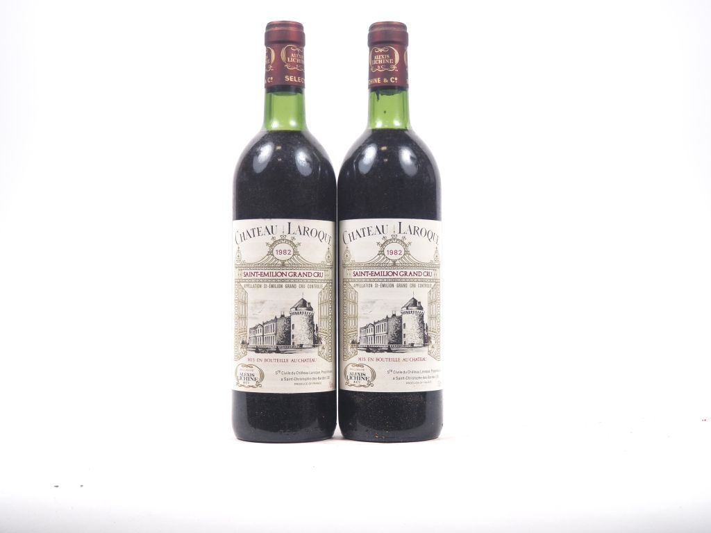 Lot de 2 BOUTEILLES CHÂTEAU LAROQUE GC ST ÉMILION - 1982 - 1 BG/1 LB au prix de 20 à 30 € en vente aux enchères par l'hôtel des ventes Primardeco