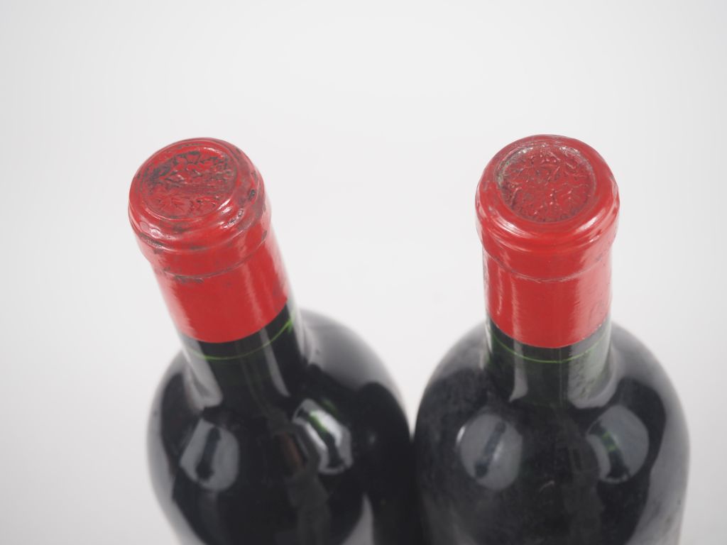 2 BOUTEILLES CHÂTEAU L'ÉVANGILE POMEROL - 1957 - 1 TRÈS BON NIVEAU/1 BON NIVEAU/SE/BOUCHON ÉTAMPÉS/CAPSULES NEUTRES