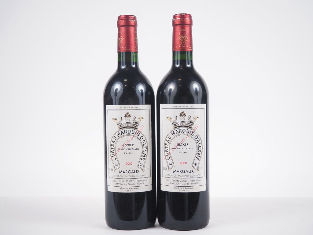 Lot de 2 BOUTEILLES CHÂTEAU MARQUIS D'ALESME GCC MARGAUX - 2000 au prix de 60 à 80 € en vente aux enchères par l'hôtel des ventes Primardeco