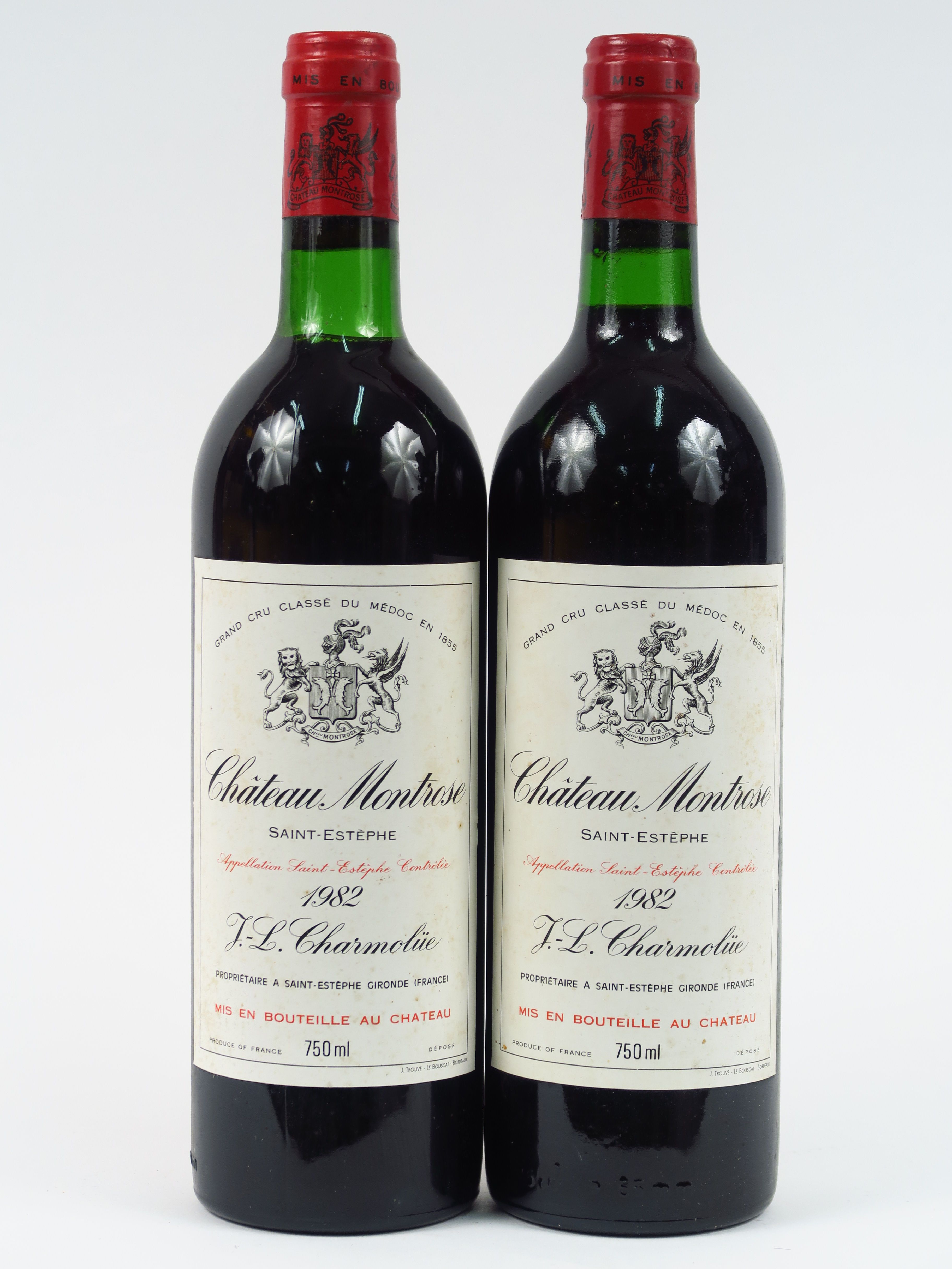 Lot de 2 BOUTEILLES CHÂTEAU MONTROSE GCC ST ESTEPHE - 1982 - 1 BG au prix de 220 à 240 € en vente aux enchères par l'hôtel des ventes Primardeco