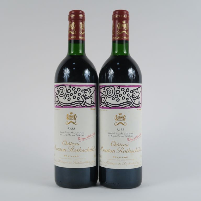2 BOUTEILLES CHÂTEAU MOUTON ROTHSCHILD 1er GCC PAUILLAC - 1988 - BG/PAPIERS DE SOIE