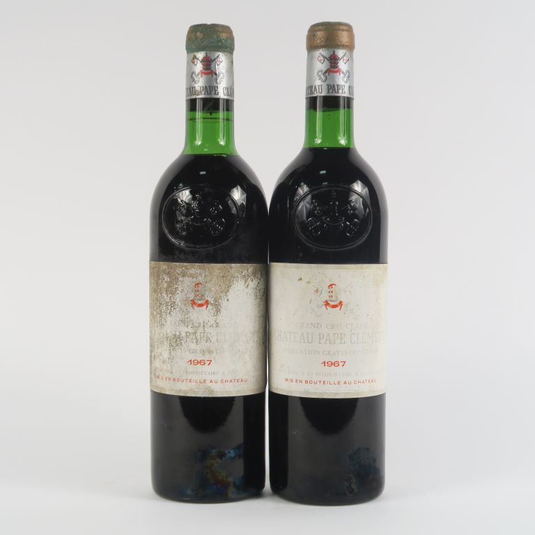 Lot de 2 BOUTEILLES CHÂTEAU PAPE CLÉMENT GCC GRAVES - 1967 - 1 BG/1 LB/1 ET au prix de 40 à 60 € en vente aux enchères par l'hôtel des ventes Primardeco