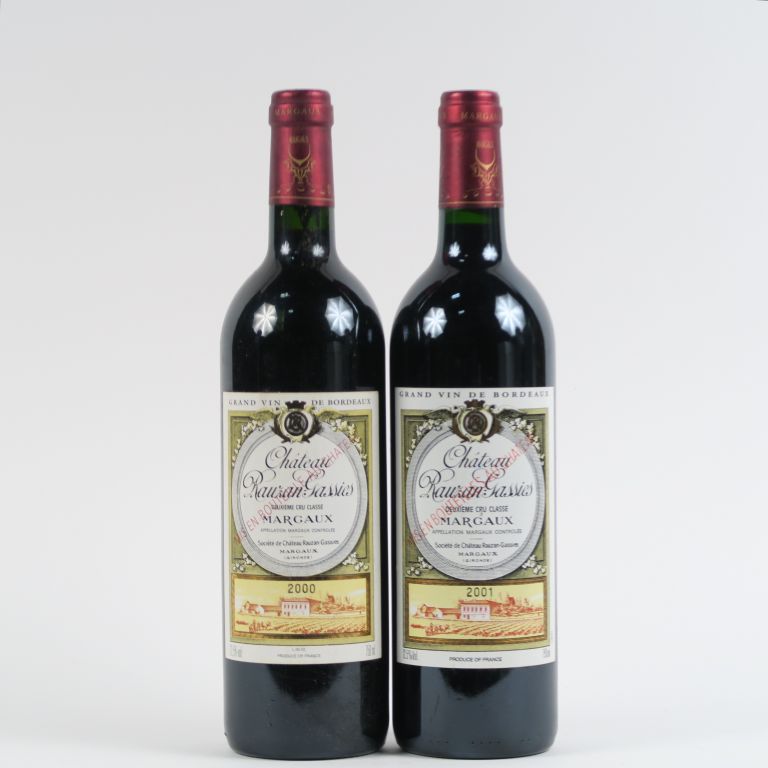 Lot de 2 BOUTEILLES CHÂTEAU RAUZAN GASSIES GCC MARGAUX - 1 de 2000/1 de 2001 au prix de 80 à 90 € en vente aux enchères par l'hôtel des ventes Primardeco