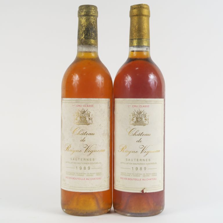 Lot de 2 BOUTEILLES CHÂTEAU RAYNE VIGNEAU 1er CC SAUTERNES - 1989 - 1 ETLA/BL au prix de 40 à 50 € en vente aux enchères par l'hôtel des ventes Primardeco