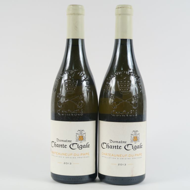 Lot de 2 BOUTEILLES CHÂTEAUNEUF DU PAPE BLANC DOMAINE CHANTE CIGALE - 2013 au prix de 20 à 30 € en vente aux enchères par l'hôtel des ventes Primardeco
