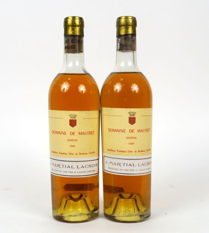 Lot de 2 BOUTEILLES DOMAINE DE MAUTRET SEMENS - 1949 - HEP au prix de 50 à 60 € en vente aux enchères par l'hôtel des ventes Primardeco