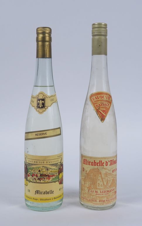 2 BOUTEILLES EAU DE VIE DE MIRABELLE 45° : 1 MOSBACH - 1 LEHMANN