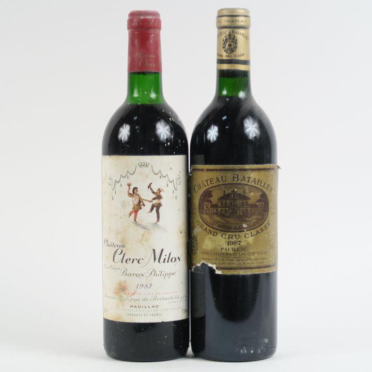 2 BOUTEILLES GCC PAUILLAC 1987 : 1 CHÂTEAU CLERC MILON LB - 1 CHÂTEAU BATAILLEY BG/EA