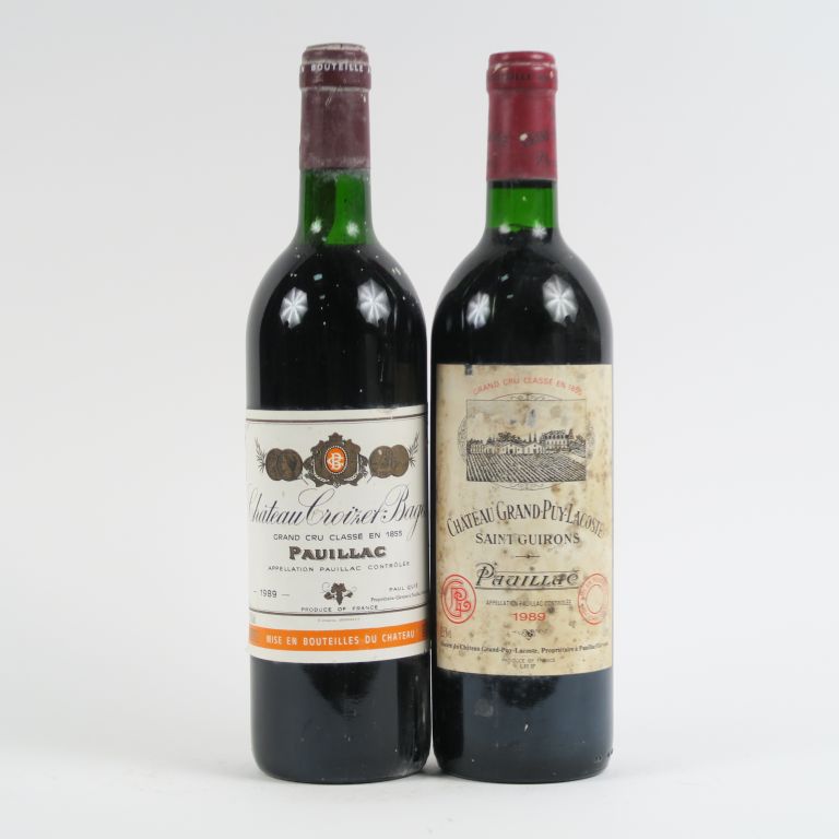 2 BOUTEILLES GCC PAUILLAC 1989 : 1 CHÂTEAU CROIZET BAGES LB - 1 CHÂTEAU GRAND PUY LACOSTE BG