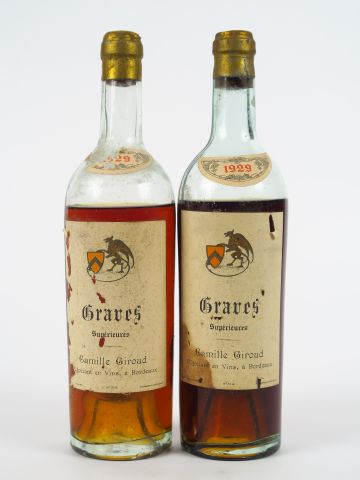 Lot de 2 BOUTEILLES GRAVES SUPERIEUR CAMILLE GIROUD - 1929 - BEP-VIDANGE au prix de 40 à 50 € en vente aux enchères par l'hôtel des ventes Primardeco
