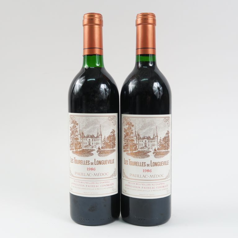 Lot de 2 BOUTEILLES LES TOURELLES DE LONGUEVILLE PAUILLAC - 1986 - 1 BG au prix de 35 à 40 € en vente aux enchères par l'hôtel des ventes Primardeco