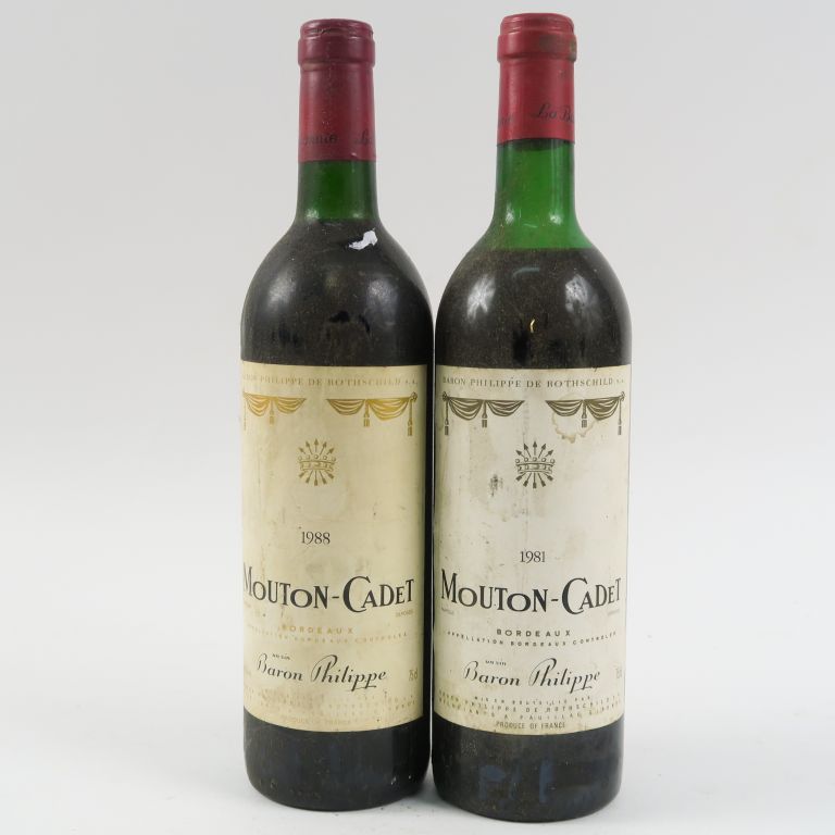 2 BOUTEILLES MOUTON CADET : 1 de 1981 MEP - 1 de 1988 BG