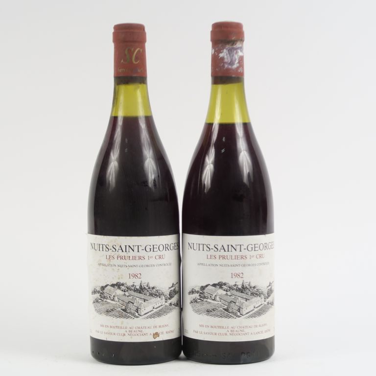 2 BOUTEILLES NUITS ST GEORGES 1er CRU 'LES PRULIERS' SAVOUR CLUB - 1982 - 1 à 3,5 CM