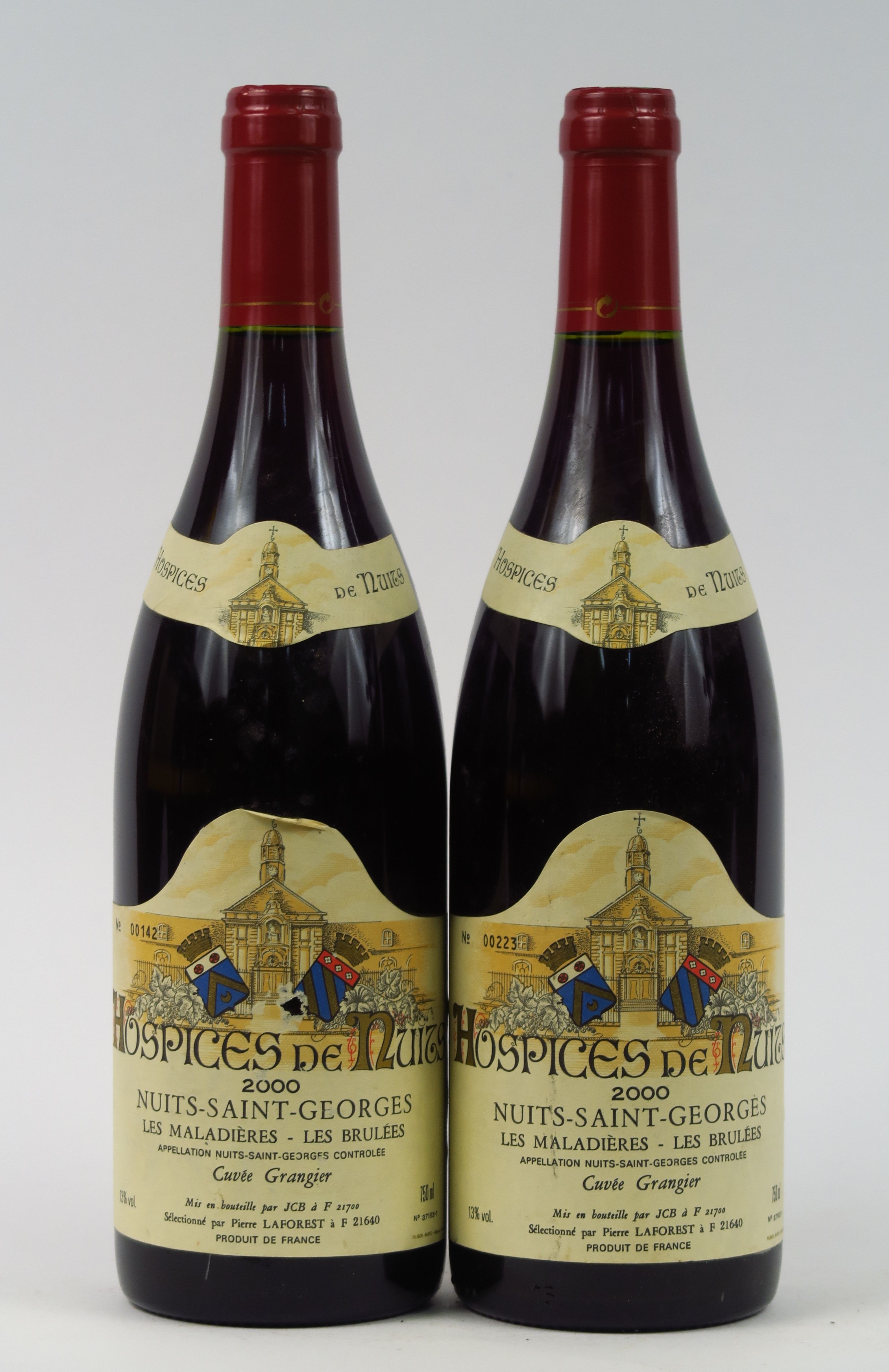 2 BOUTEILLES NUITS ST GEORGES 'LES MALADIERES - LA BRULEES' CUVEE GRANGIER HOSPICES DE NUITS - 2000