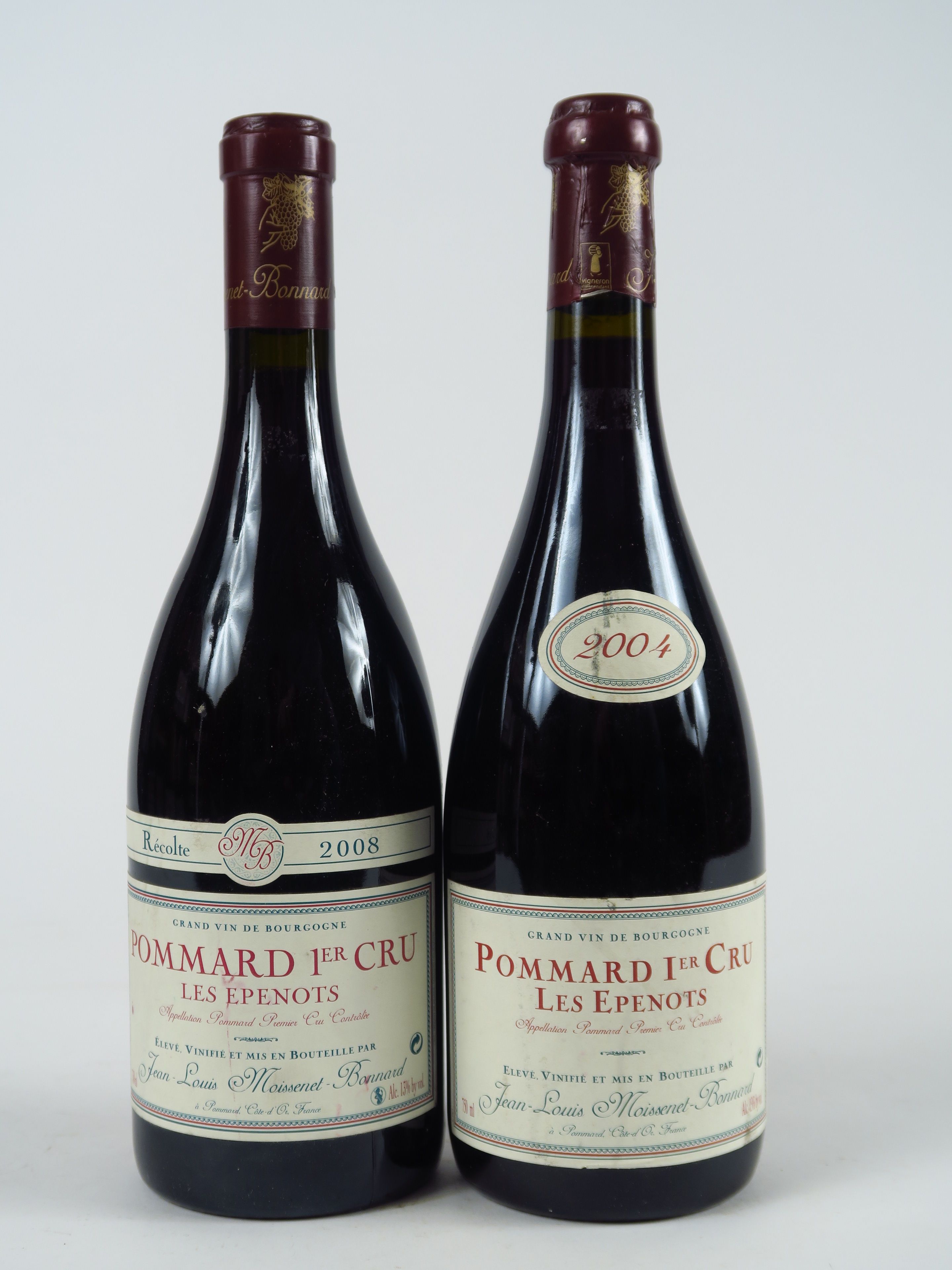 2 BOUTEILLES POMMARD 1er CRU 'LES EPENOTS' J.L. MOISSENET BONNARD - 1 de 2004/1 de 2008