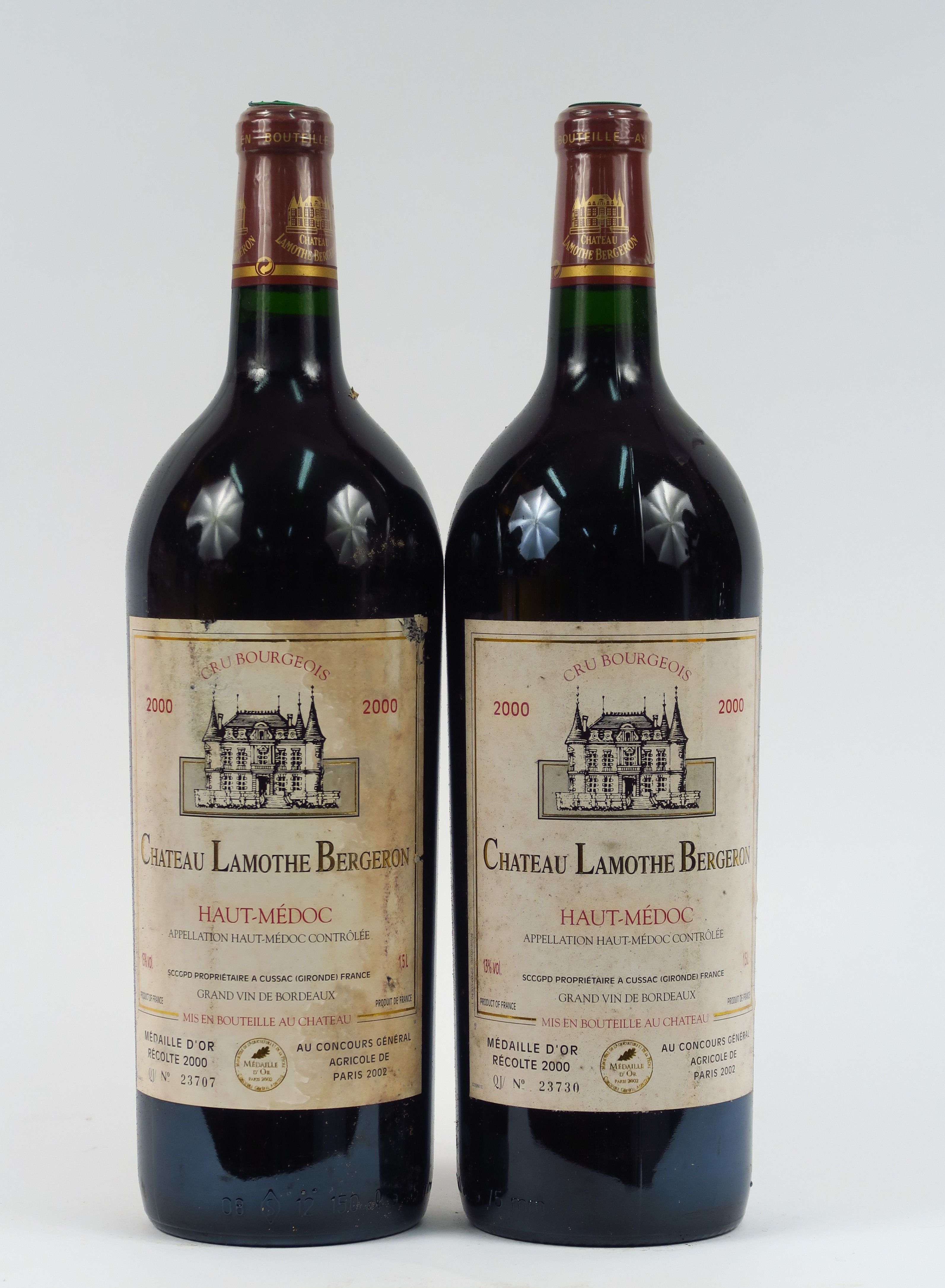 Lot de 2 MAGNUMS CHÂTEAU LAMOTHE BERGERON CB HAUT MEDOC - 2000 au prix de 70 à 80 € en vente aux enchères par l'hôtel des ventes Primardeco