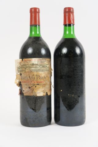 2 MAGNUMS CHÂTEAU PAVIE 1er GCC ST EMILION - 1975 - 1 LB/1 HEP++/1 SE - BOUCHON ESTAMPE/1 ETA