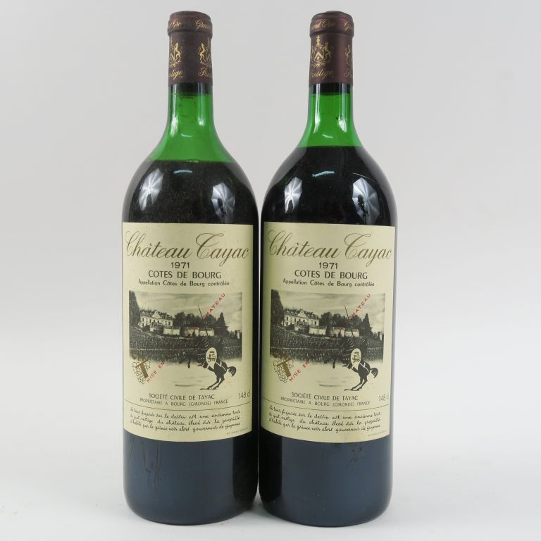 Lot de 2 MAGNUMS CHÂTEAU TAYAC CÔTES DE BOURG - 1971 - 1 LB-HEP/1 MEP au prix de 70 à 80 € en vente aux enchères par l'hôtel des ventes Primardeco