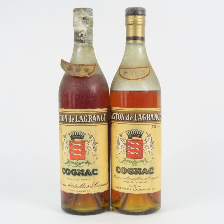2 VIEILLES BOUTEILLES COGNAC GASTON DE LAGRANGE - 1 CAPS AB/1 NIVEAU BAS