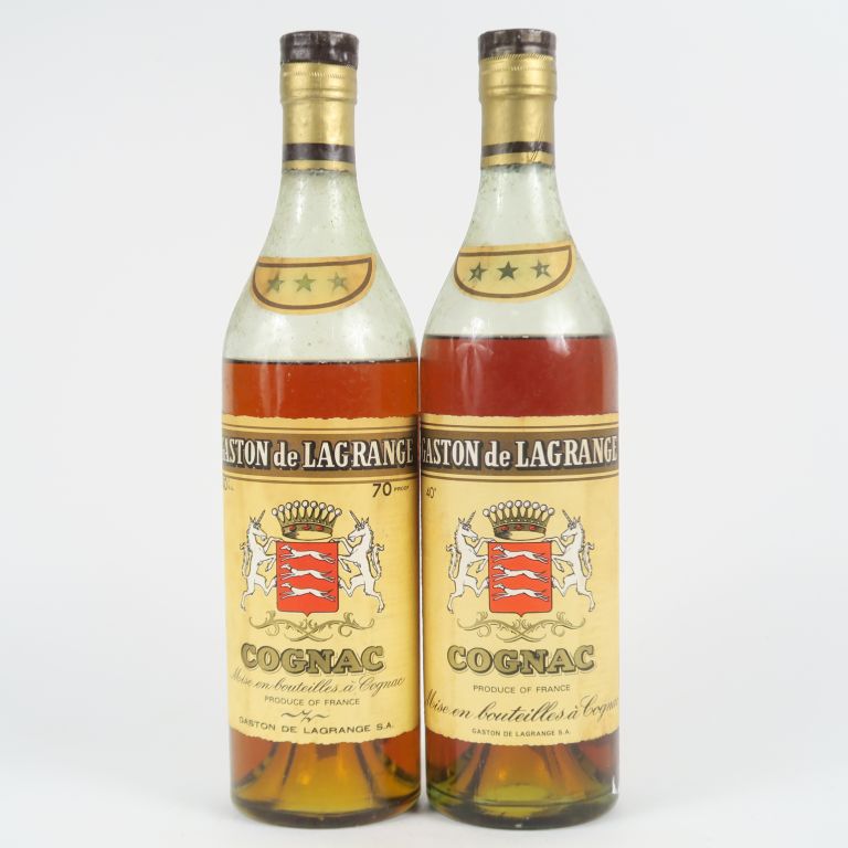 2 VIEILLES BOUTEILLES COGNAC GASTON DE LAGRANGE - NIVEAUX BAS