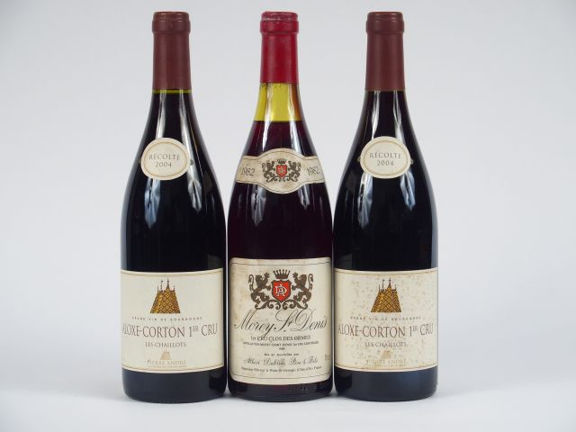3 BOUTEILLES : 2 ALOXE CORTON 1er CRU 'LES CHAILLOTS' 2004 - 1 MOREY ST DENIS A. DABRUN 1982 3 CM