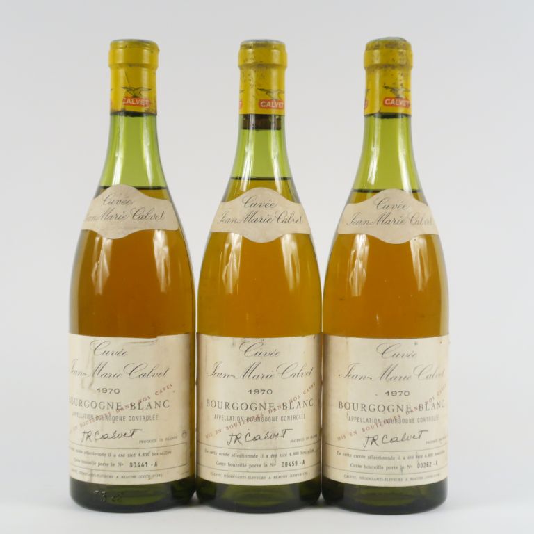 Lot de 3 BOUTEILLES BOURGOGNE ALIGOTÉ 'CUVÉE JEAN MARIE CALVET' - 1970 au prix de 15 à 20 € en vente aux enchères par l'hôtel des ventes Primardeco