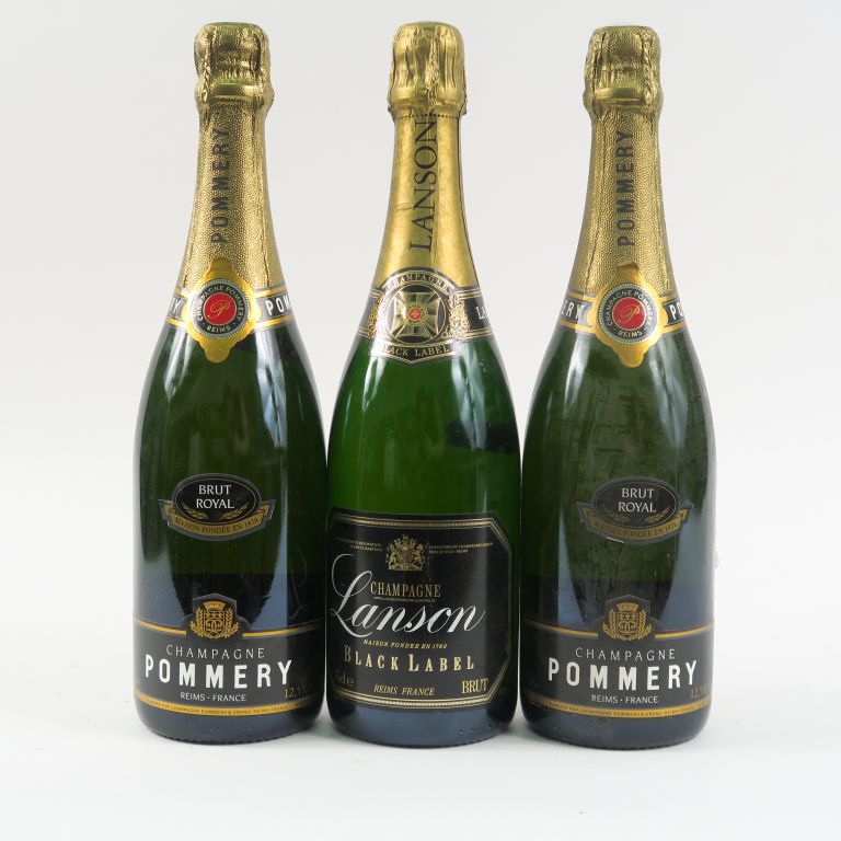 3 BOUTEILLES CHAMPAGNE : 2 POMMERY BRUT ROYAL - 1 LANSON BLACK LABEL