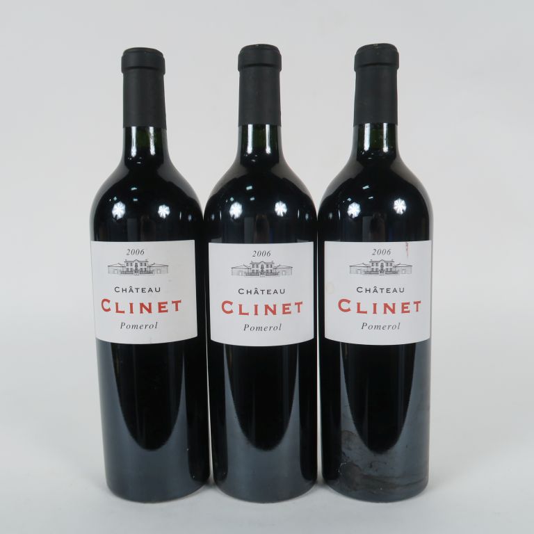 Lot de 3 BOUTEILLES CHÂTEAU CLINET POMEROL - 2006 - 1 ETLT au prix de 150 à 170 € en vente aux enchères par l'hôtel des ventes Primardeco