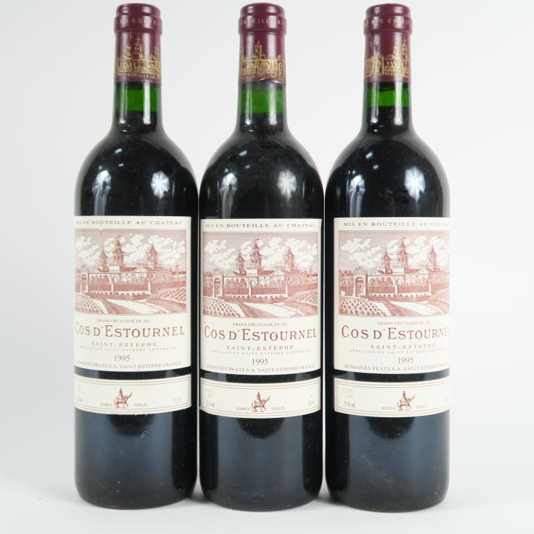 Lot de 3 BOUTEILLES CHÂTEAU COS D'ESTOURNEL GCC ST ESTEPHE - 1995 au prix de 350 à 400 € en vente aux enchères par l'hôtel des ventes Primardeco
