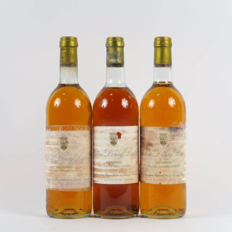 3 BOUTEILLES CHÂTEAU DOISY DAENE CC SAUTERNES - 1981 - 2 BG/1 LB/ET SCOTCHÉES