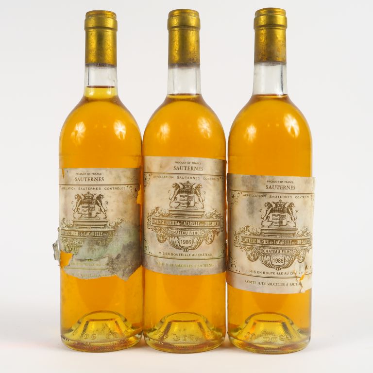 Lot de 3 BOUTEILLES CHÂTEAU FILHOT CC SAUTERNES - 1986 - BG - 3 EA au prix de 40 à 50 € en vente aux enchères par l'hôtel des ventes Primardeco