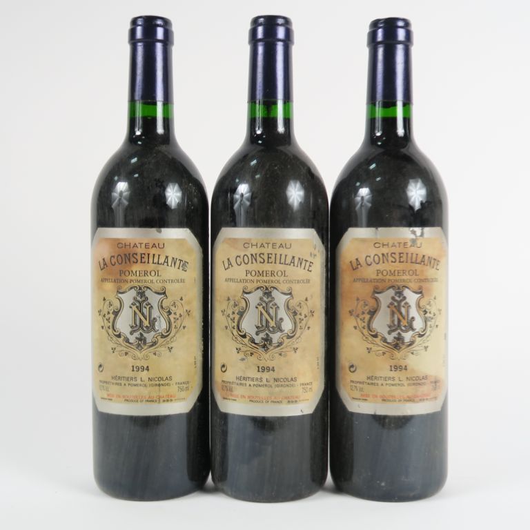 Lot de 3 BOUTEILLES CHÂTEAU LA CONSEILLANTE POMEROL - 1994 - ELF au prix de 135 à 145 € en vente aux enchères par l'hôtel des ventes Primardeco