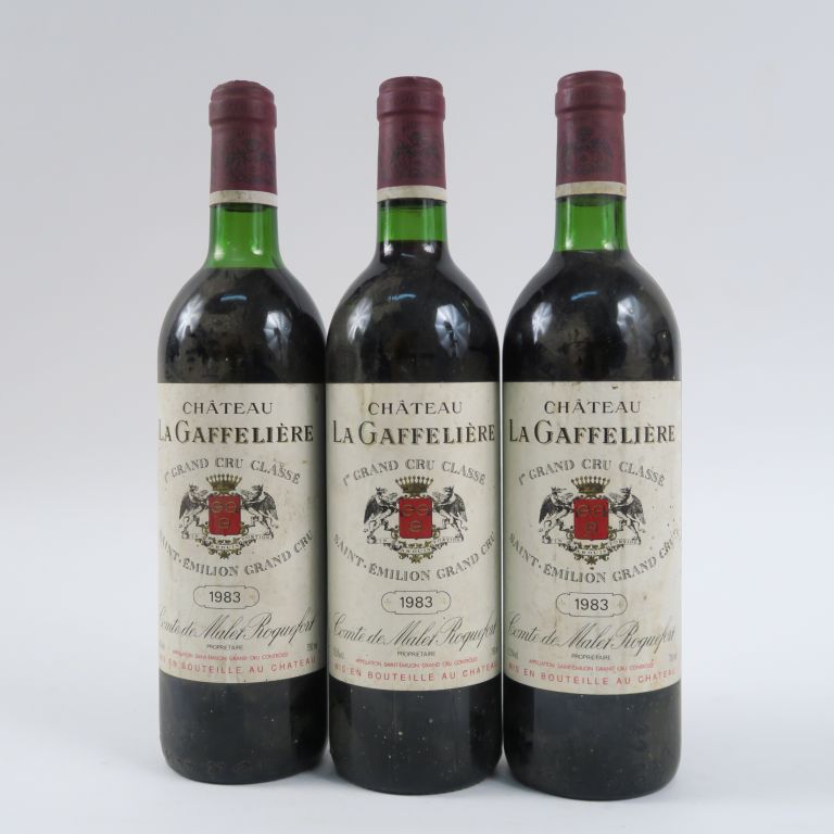 3 BOUTEILLES CHÂTEAU LA GAFFELIÈRE 1er GCC ST EMILION - 1983 - 1 BG++/1 BG/1 LB