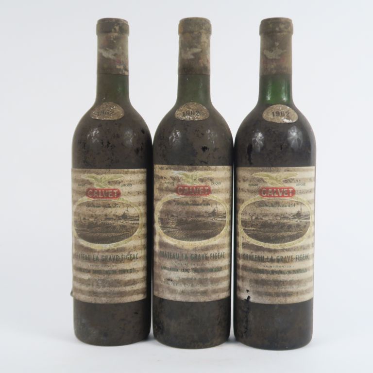 3 BOUTEILLES CHÂTEAU LA GRAVE FIGEAC ST ÉMILION MISE CALVET - 1962 - BG/BTS/EA