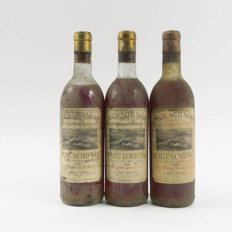 3 BOUTEILLES CHÂTEAU LA NÈRE 'CRÈME DE TÊTE' LOUPIAC - 1961 - 1 BG/1 HEP/1 MEP/BS