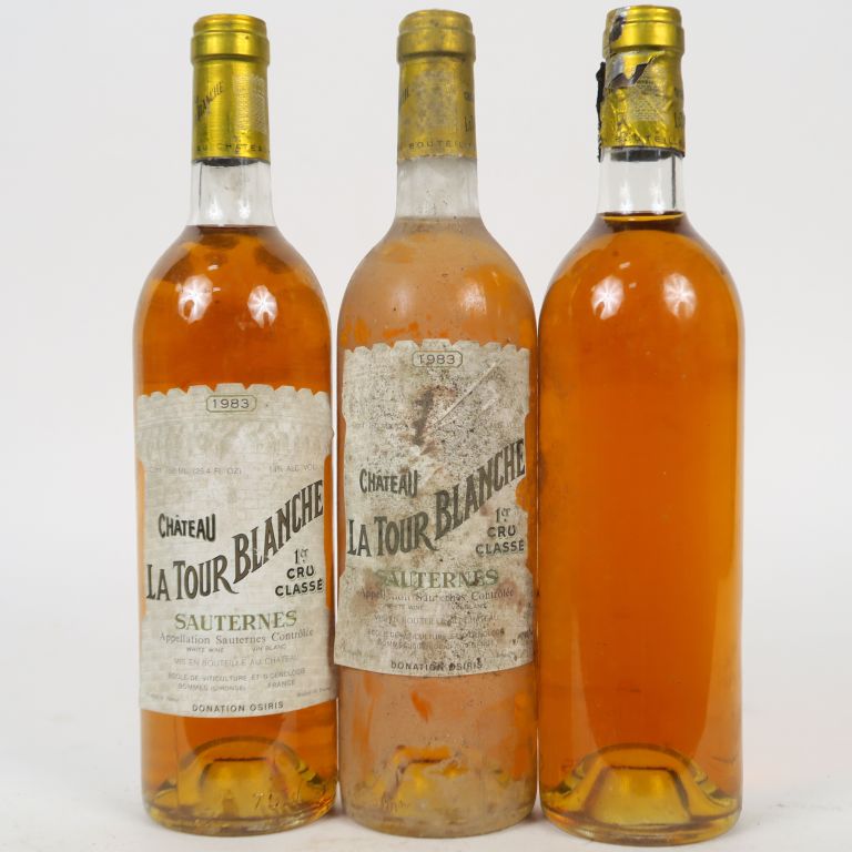 3 BOUTEILLES CHÂTEAU LA TOUR BLANCHE 1er CC SAUTERNES - 1983 - 1 BG/1 PRESUMEE/ ES