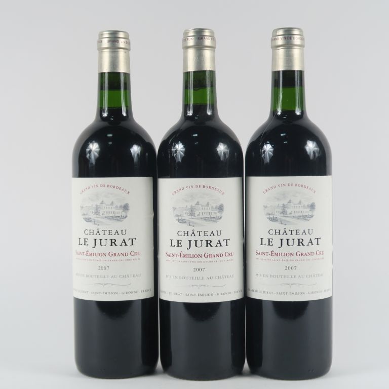 Lot de 3 BOUTEILLES CHÂTEAU LE JURAT GC ST ÉMILION - 2007 au prix de 45 à 55 € en vente aux enchères par l'hôtel des ventes Primardeco