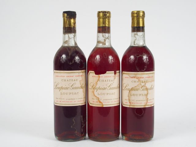 Lot de 3 BOUTEILLES CHÂTEAU LOUPIAC GAUDIET - 1964 - LB/EA/1 CAPS CORRODEE au prix de 75 à 90 € en vente aux enchères par l'hôtel des ventes Primardeco