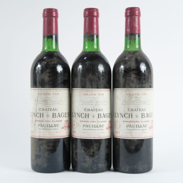 Lot de 3 BOUTEILLES CHÂTEAU LYNCH BAGES GCC PAUILLAC - 1983 - LB au prix de 180 à 200 € en vente aux enchères par l'hôtel des ventes Primardeco