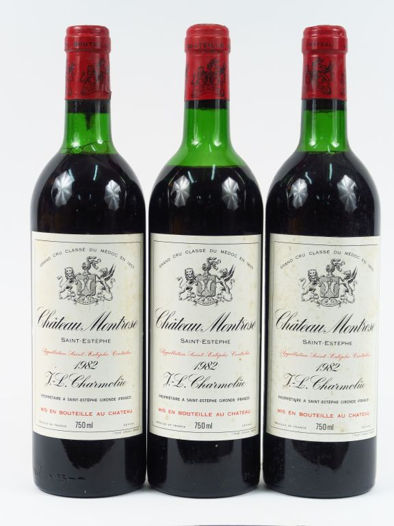 3 BOUTEILLES CHÂTEAU MONTROSE GCC ST ESTEPHE - 1982 - 2 LB/1 MEP/1 CAPS TL CORRODEE