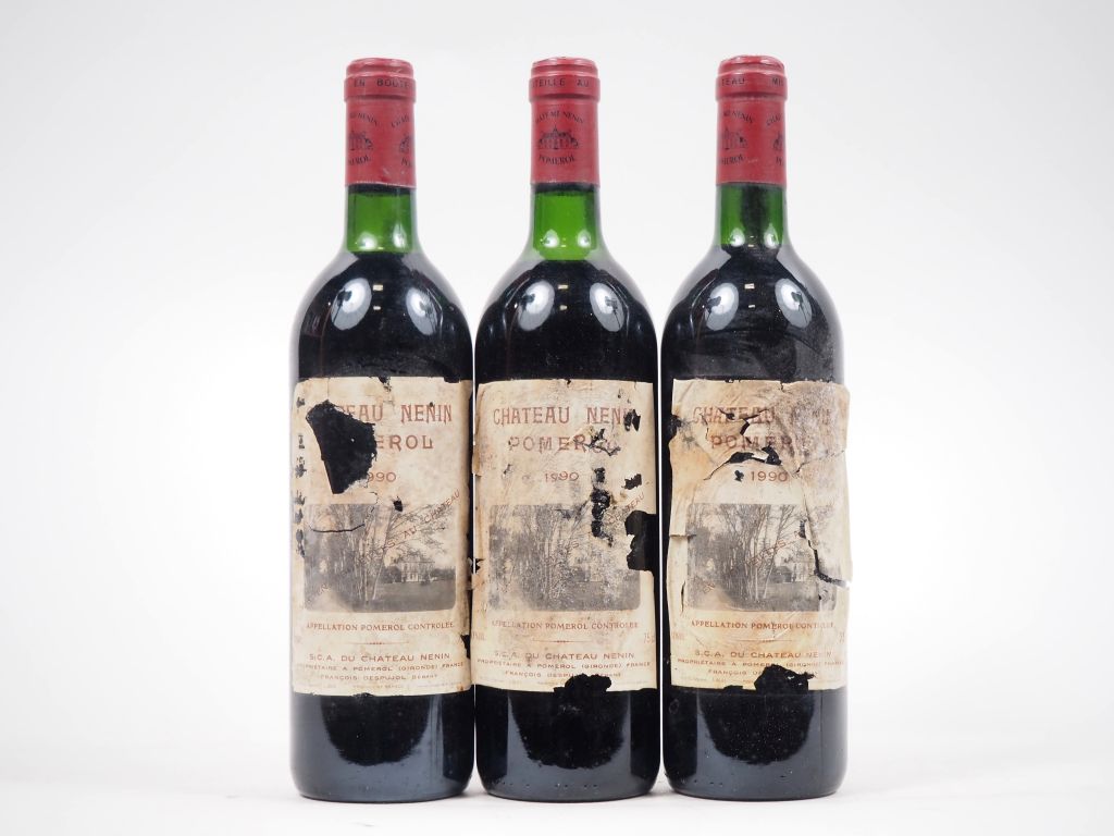 Lot de 3 BOUTEILLES CHÂTEAU NÉNIN POMEROL - 1990 - ETA au prix de 100 à 130 € en vente aux enchères par l'hôtel des ventes Primardeco