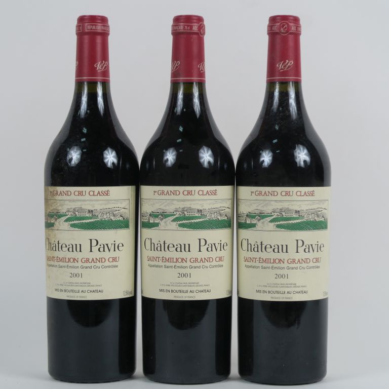 3 BOUTEILLES CHÂTEAU PAVIE 1er GCC ST EMILION - 2001 - 1 ELT