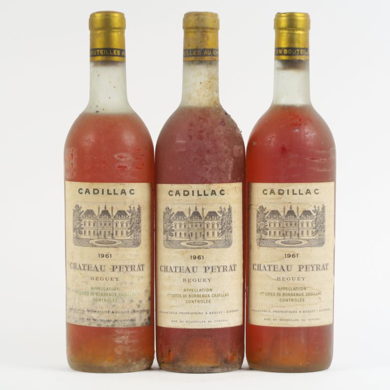 3 BOUTEILLES CHÂTEAU PEYRAT CADILLAC - 1961 - 2 BG/1 LB