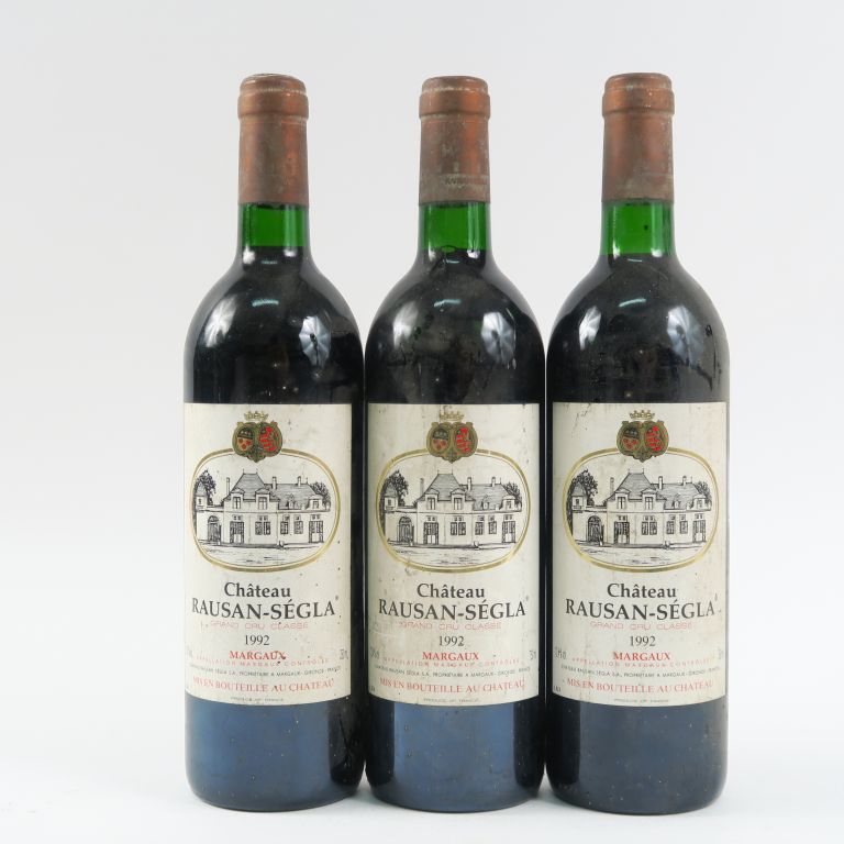 Lot de 3 BOUTEILLES CHÂTEAU RAUSAN SÉGLA GCC MARGAUX - 1992 - BG au prix de 80 à 100 € en vente aux enchères par l'hôtel des ventes Primardeco