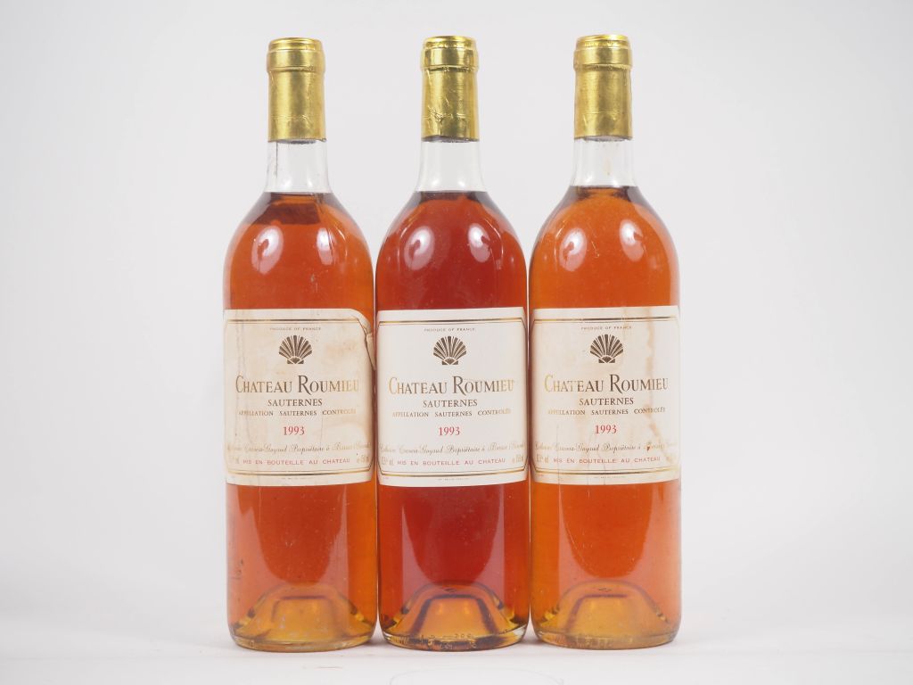 Lot de 3 BOUTEILLES CHÂTEAU ROUMIEU SAUTERNES - 1993 - 3 BG/ELS au prix de 20 à 30 € en vente aux enchères par l'hôtel des ventes Primardeco