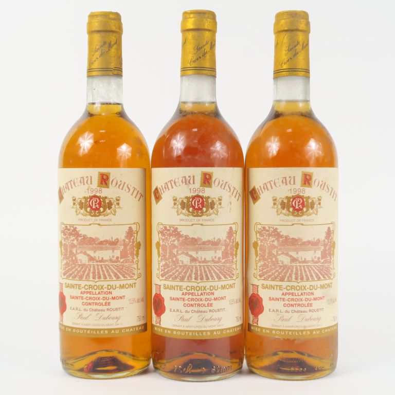Lot de 3 BOUTEILLES CHÂTEAU ROUSTIT STE CROIX DU MONT - 1998 au prix de 30 à 40 € en vente aux enchères par l'hôtel des ventes Primardeco