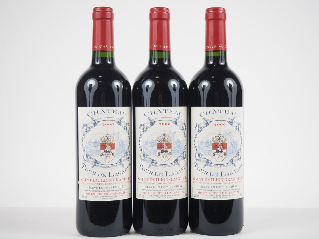 Lot de 3 BOUTEILLES CHÂTEAU TOUR DE LAGARDE GC ST ÉMILION - 2006 au prix de 15 à 20 € en vente aux enchères par l'hôtel des ventes Primardeco